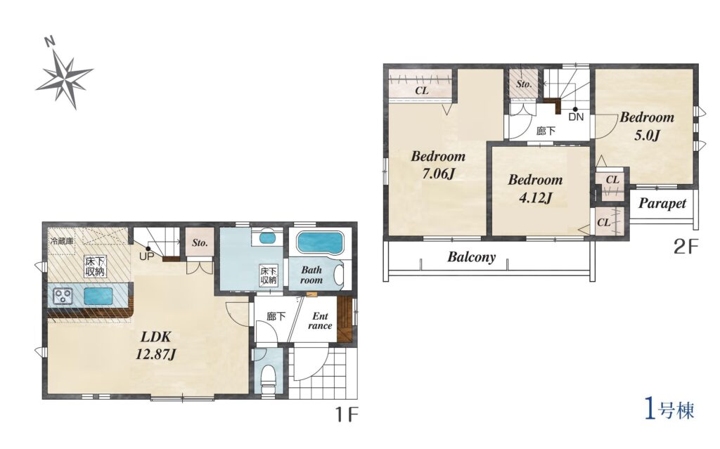 | 建物面積 | 69.56m²~72.04m² | 土地面積 | 87.73m²~90.55m² |